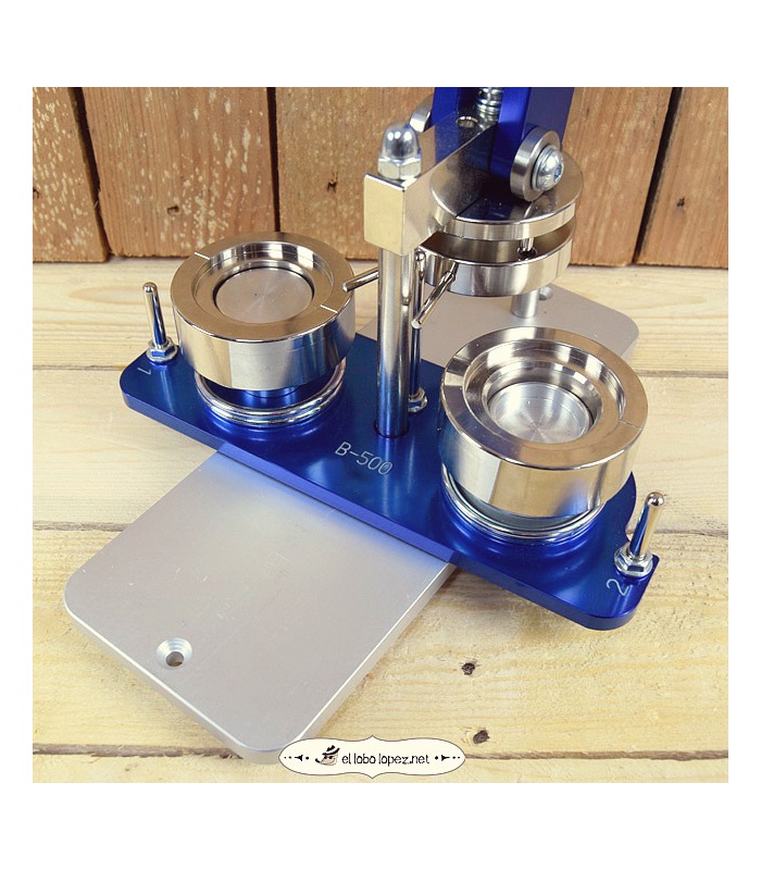 La máquina B-500 está fabricada en materiales ligeros, de gran calidad. Al integrar en una sola máquina la prensa y la matriz, su precio es enormemente competitivo. Por lo que en las máquinas de otros fabricantes costaba una matriz intercambiable, la B-500 ofrece máquina y matriz. Sin embargo, la calidad de las chapas que se obtiene y el ritmo de producción es el mismo que en las máquinas tradicionales.