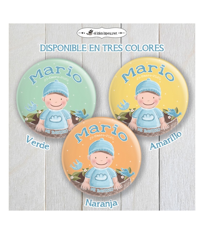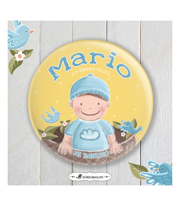 Chapa Personalizada "BEBÉ PAJARITOS" (niño) Ø 59mm o 75mm (Diseño by Arteneus).