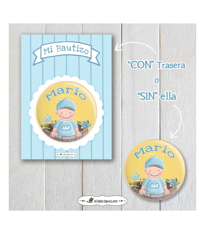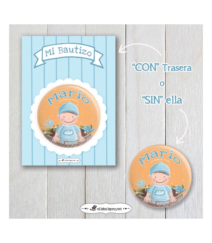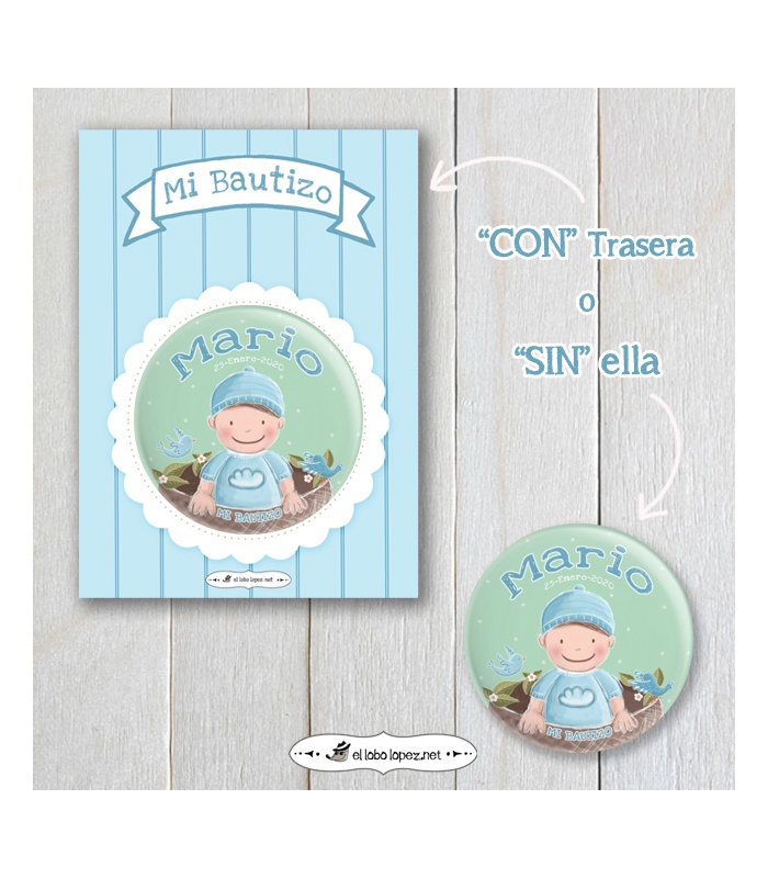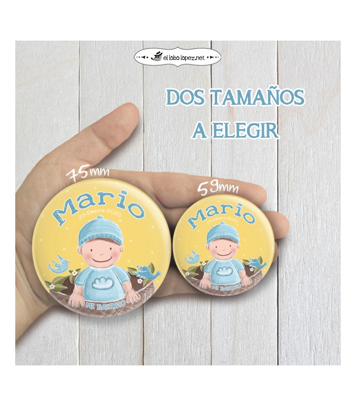 Estas chapas serán el regalo perfecto para tener un bonito recuerdo del nacimiento de tu bebé! Como imán para nevera, espejito de bolsillo, etc...Personalizadas con el nombre de tu pequeño y la fecha de su bautizo.