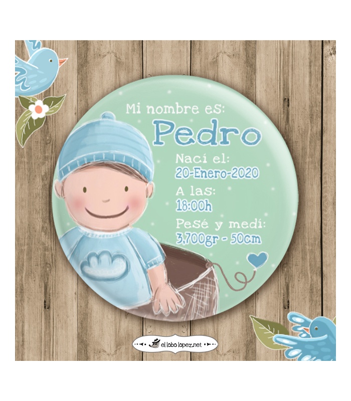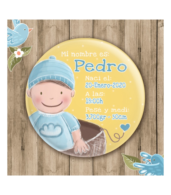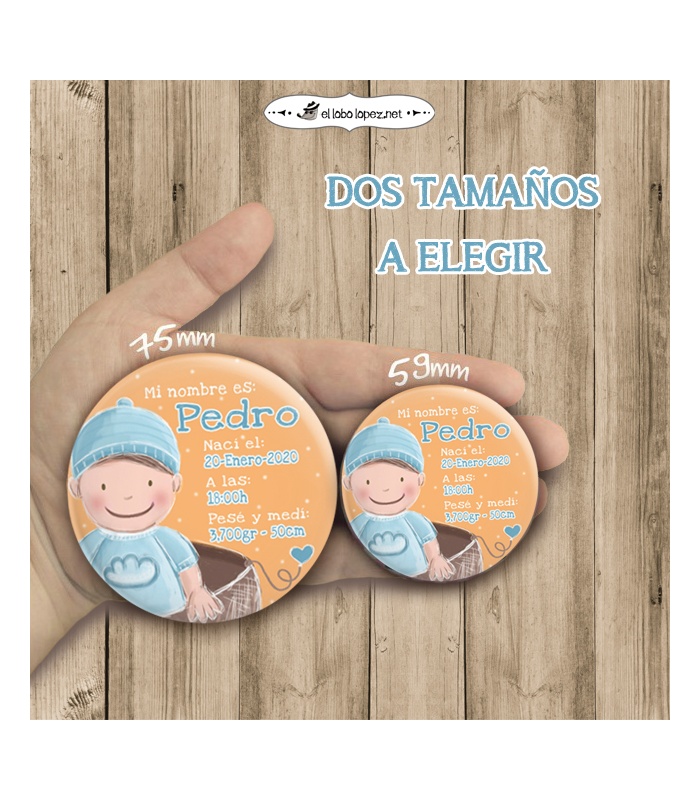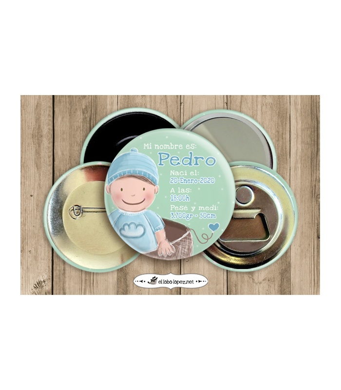 El detallito perfecto para regalar a famililares y amigos y que así recuerden esos momentos tan emotivos del nacimiento de vuestro bebé! Con diferentes traseras disponibles: Alfiler para la ropa, Espejito de bolsillo, Imán de nevera o Abrebotellas Magnético...
