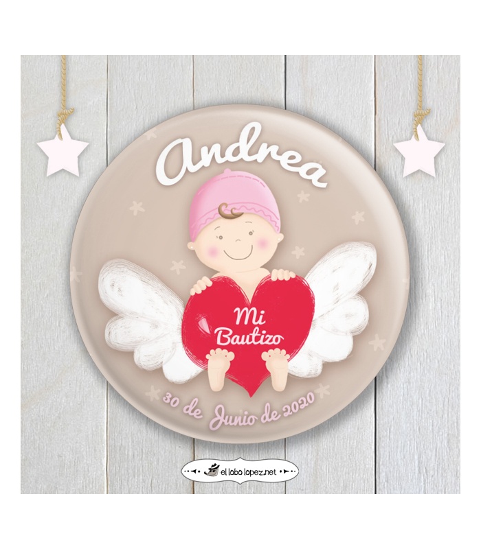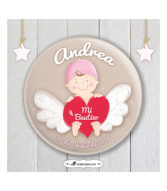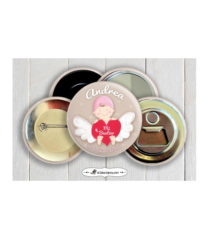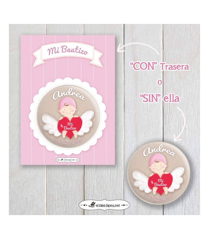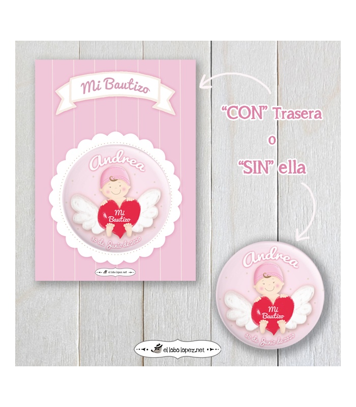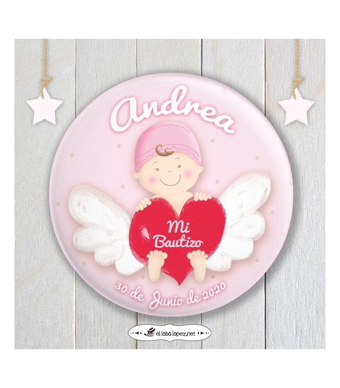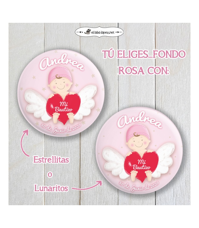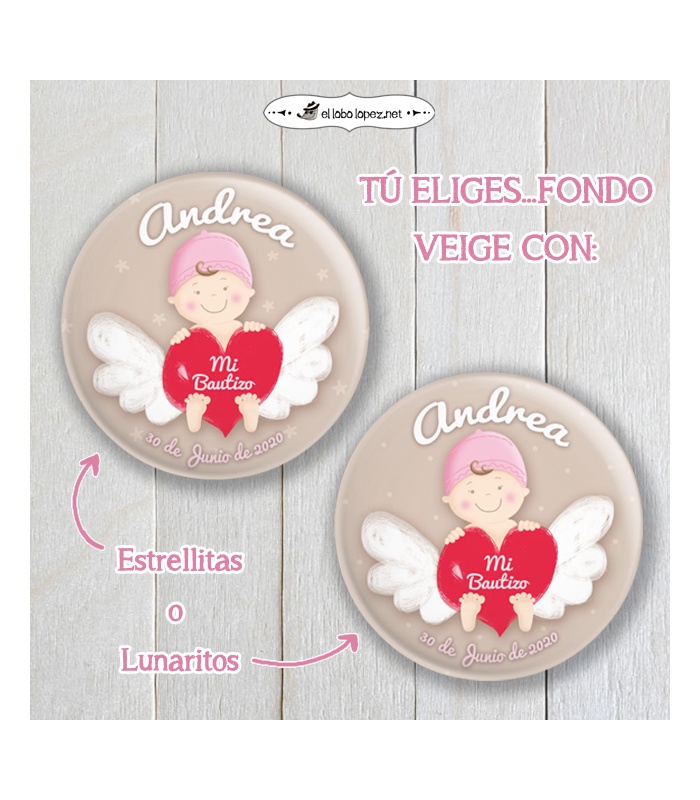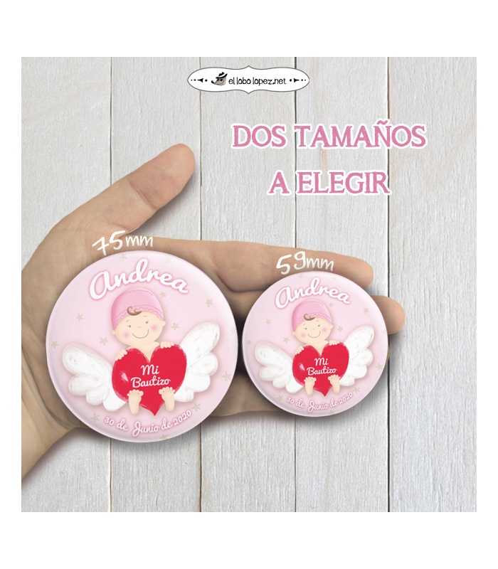 Chapa Personalizada "BEBÉ ANGELITO" (niña) Ø 59mm o 75mm (Diseño by Arteneus).