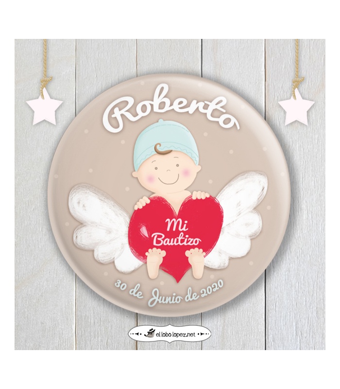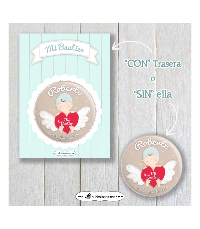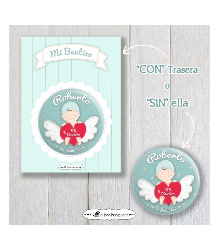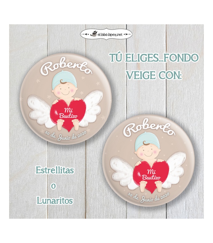 Chapa Personalizada "BEBÉ ANGELITO" (niño) Ø 59mm o 75mm (Diseño by Arteneus).
