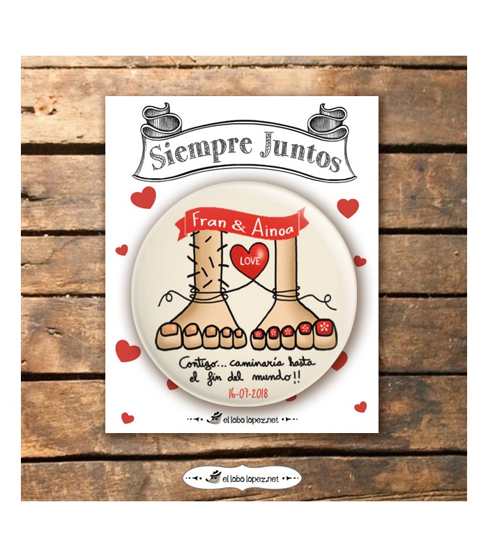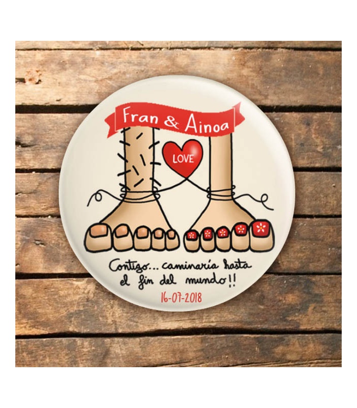 Chapa Especial Detallito para Bodas "Pies Amorosos"de / Ø 59 mm y 75mm. Diseño by Arteneus.