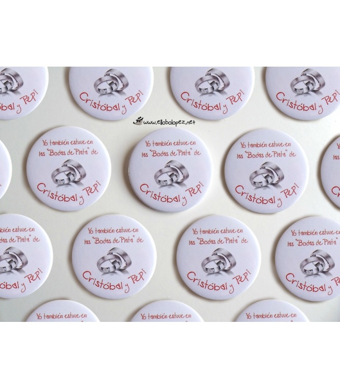 Chapa Especial BODAS DE PLATA de Ø 59 mm y 75mm.
