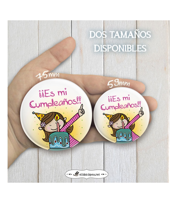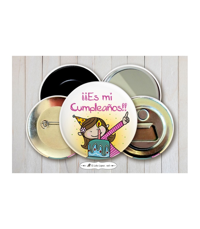 Chapa Cumpleaños "TARTA" (ella) Ø 59mm y 75mm (Diseño by Arteneus).