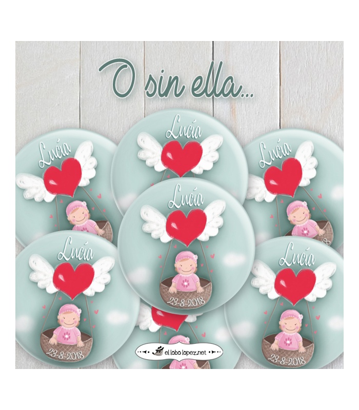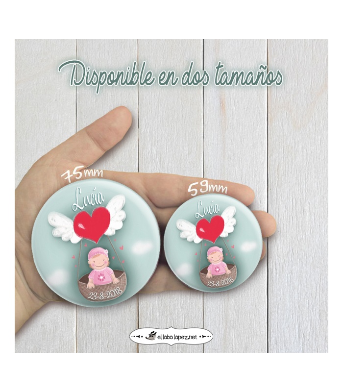 Estas chapas serán el regalo perfecto para tener un bonito recuerdo del nacimiento de tu bebé! Como imán para nevera, espejito de bolsillo, etc...Personalizadas con el nombre de tu pequeña y la fecha de su bautizo.