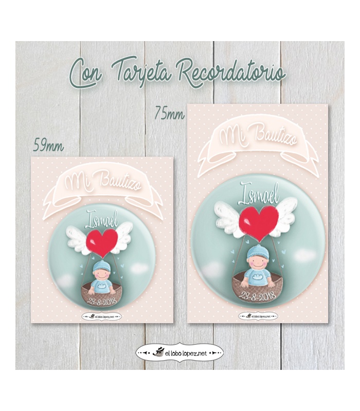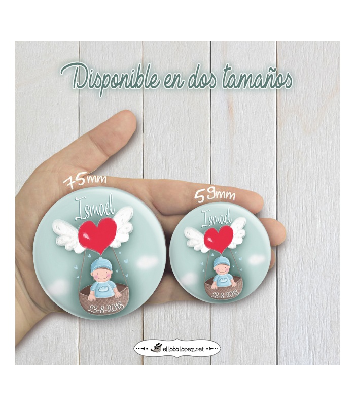 Estas chapas serán el regalo perfecto para tener un bonito recuerdo del nacimiento de tu bebé! Como imán para nevera, espejito de bolsillo, etc...Personalizadas con el nombre de tu pequeño y la fecha de su bautizo.
