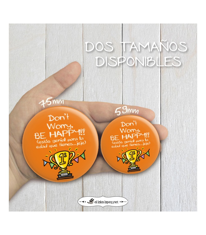 Chapa Cumpleaños "DON'T WORRY" Ø 59mm y 75mm (Diseño by Arteneus).