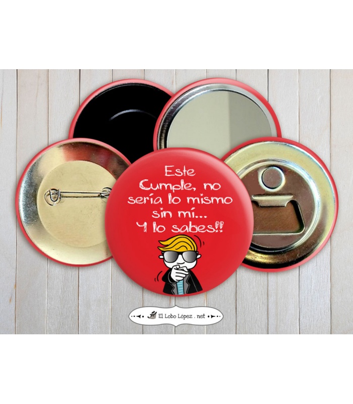 Chapa Cumpleaños "SIN MÍ" Ø 59mm y 75mm (Diseño by Arteneus).