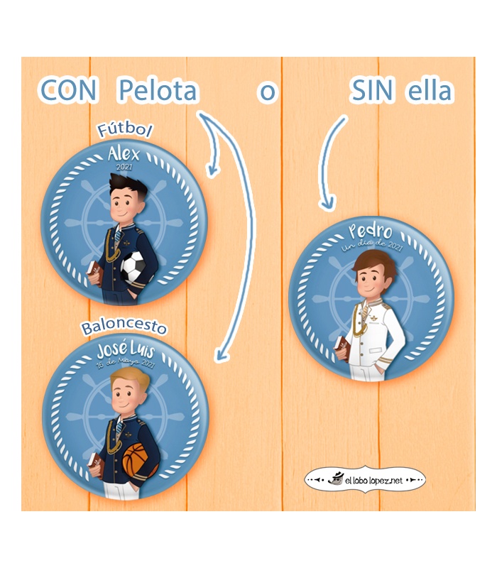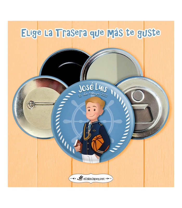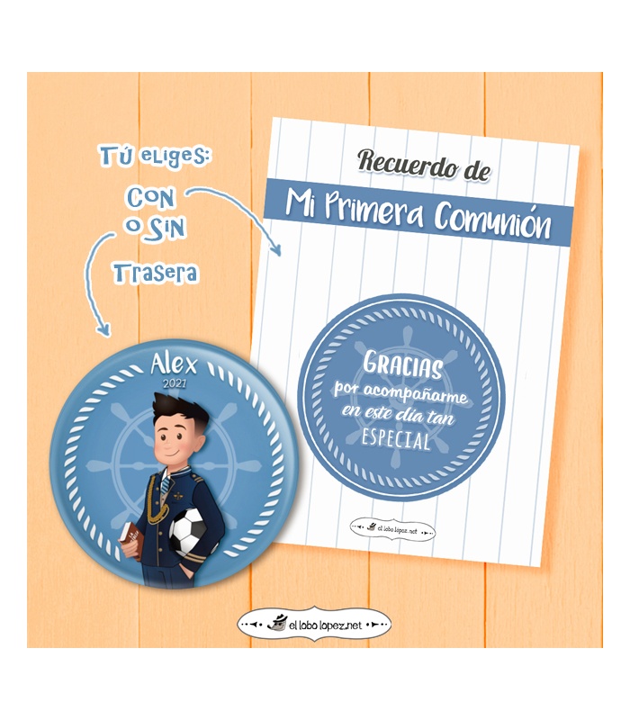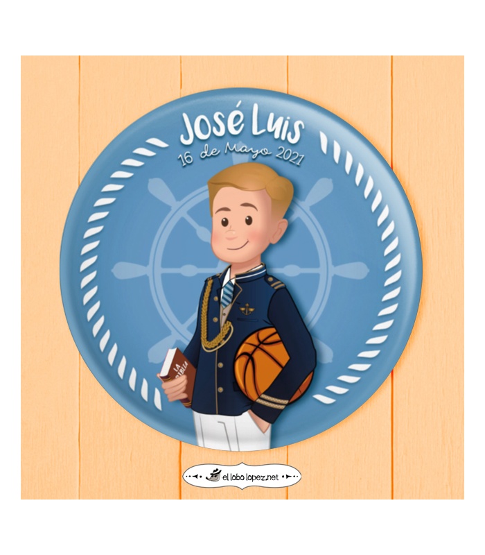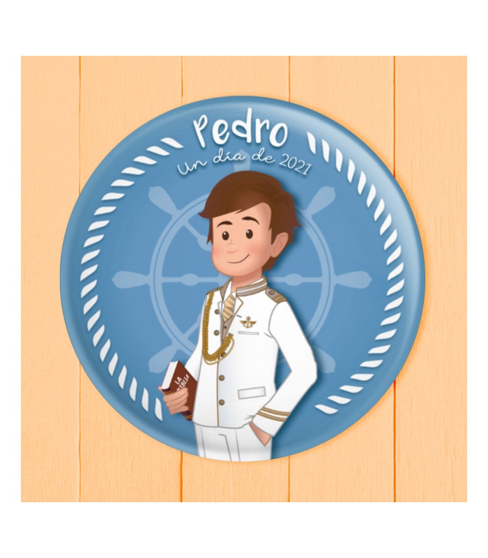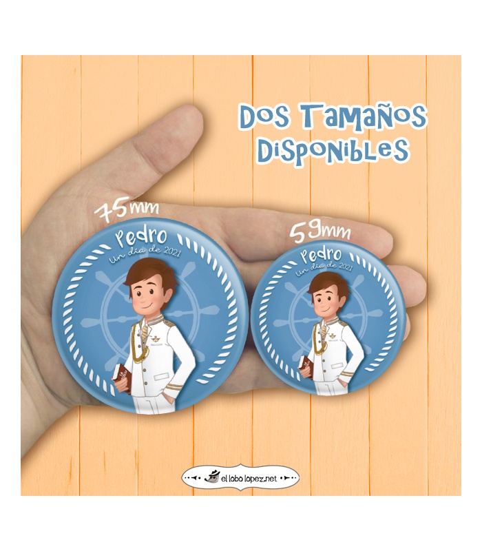 Chapa Comunión niño con diseño "ALMIRANTE" de 59mm y 75mm. Diseño by Selu Vargas.