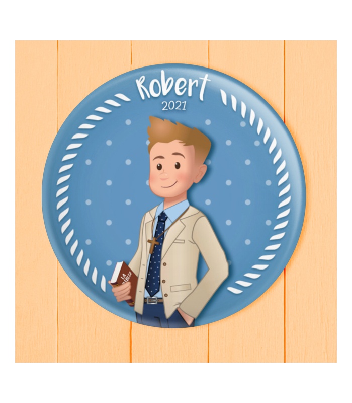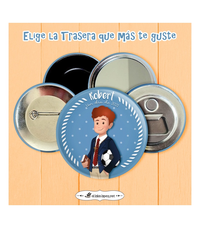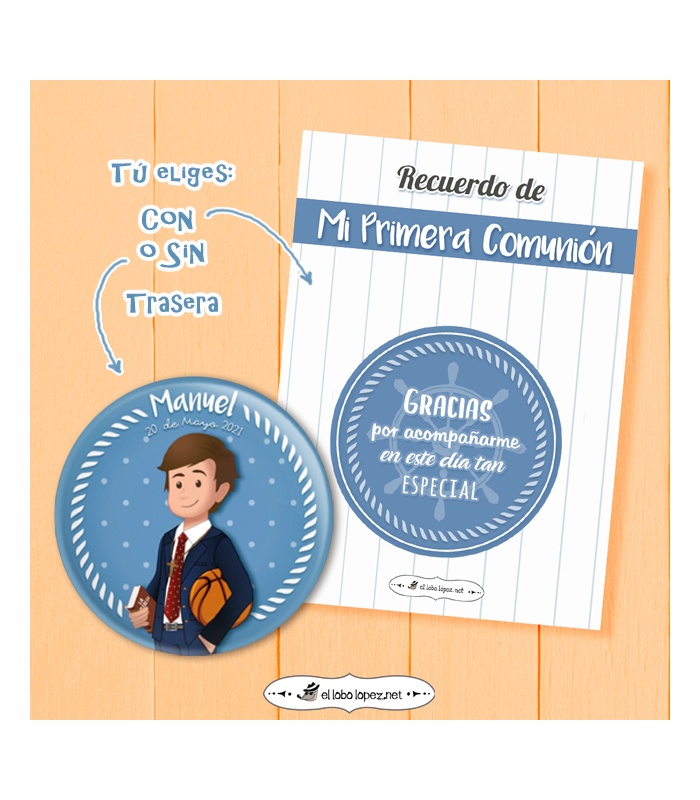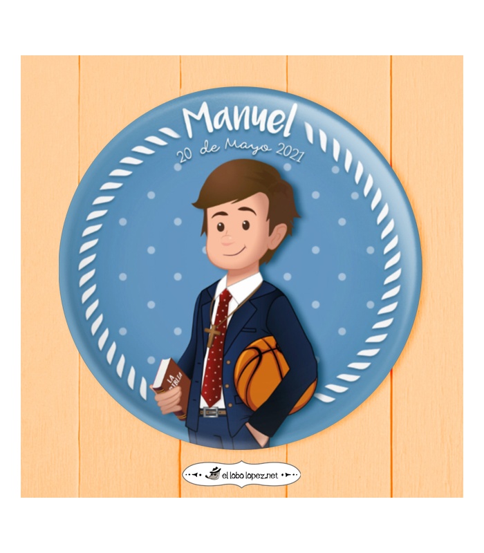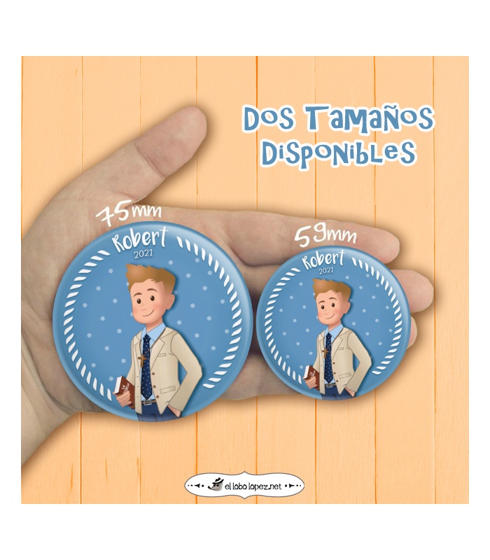 Chapa Comunión niño con diseño "CHAQUETA" de 59mm y 75mm. Diseño by Selu Vargas.