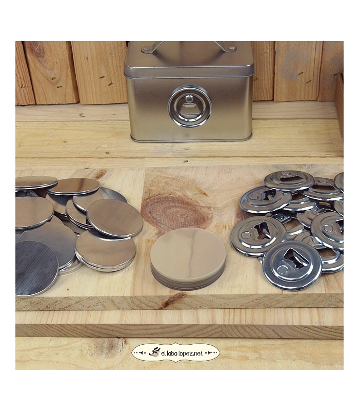 Chapa metálica con base trasera abrebotellas magnético de Ø 59 mm.