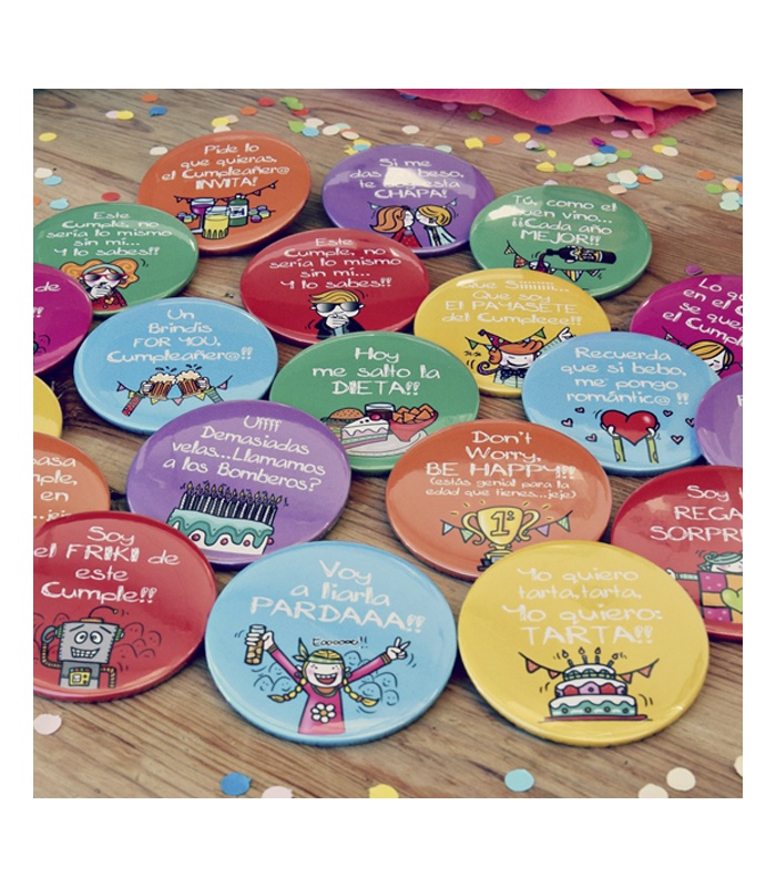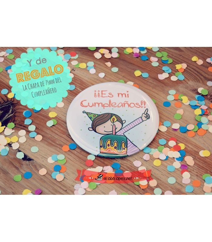 - 1 Chapa 75mm de REGALO, para El Cumpleañero/a.