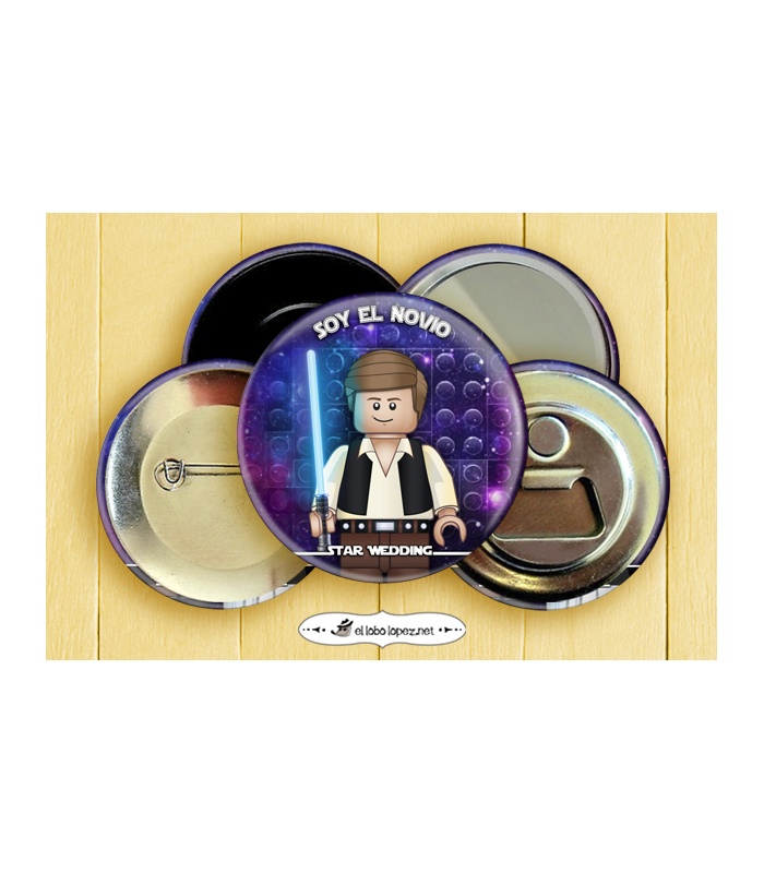 Chapa Boda "SOY EL NOVIO"(star wars) Ø 59mm y 75mm. Diseño by Selu Vargas.