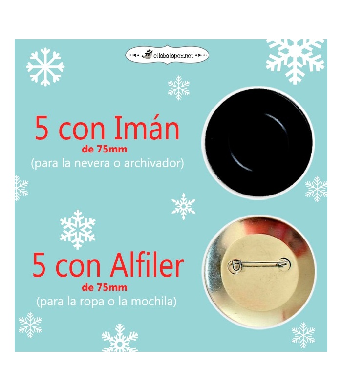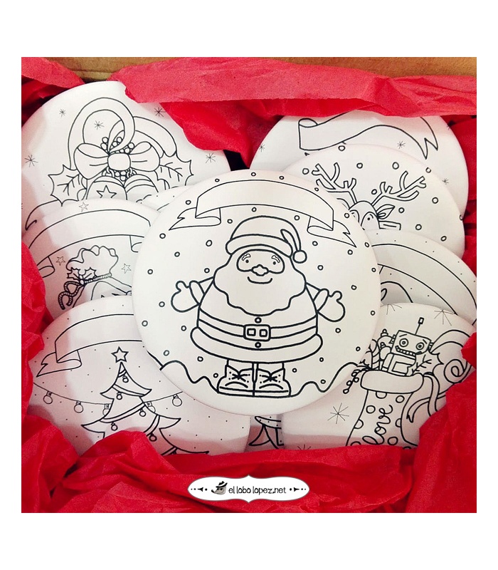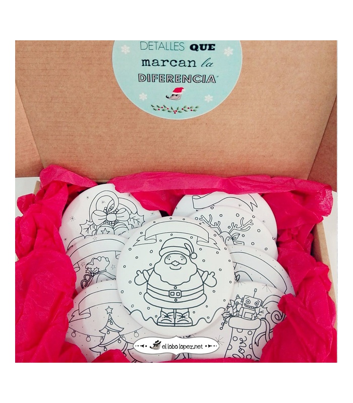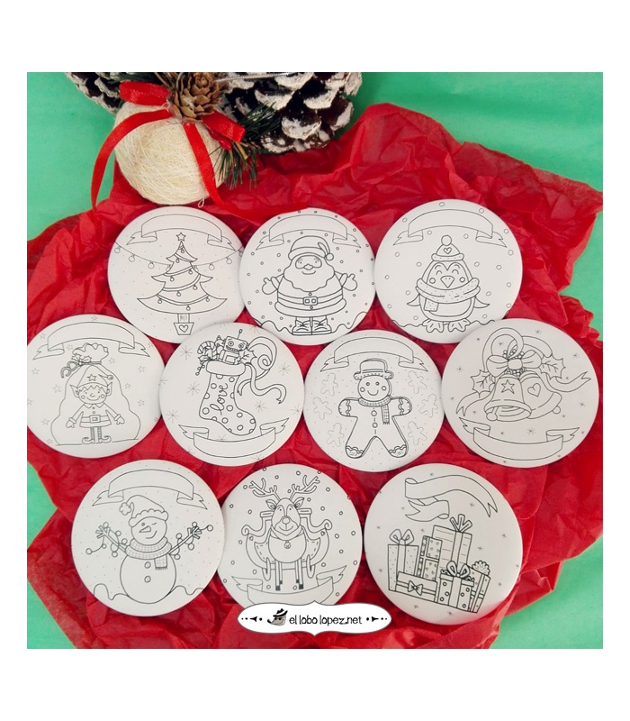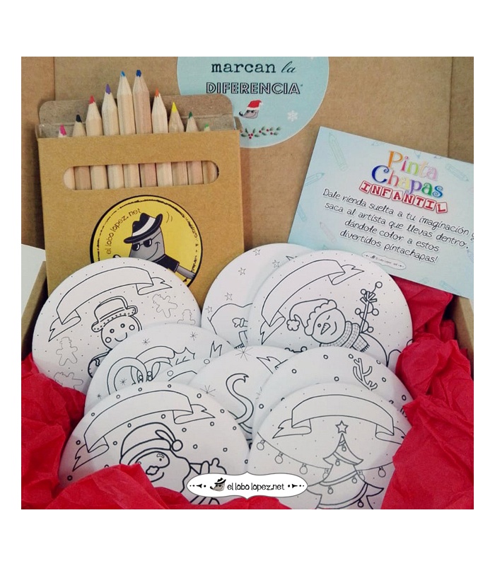 Kit "PINTA-CHAPAS" NAVIDEÑO (infantil) Ilustraciones by Arteneus. Contiene: 10 chapas de 75mm, 12 lápices pequeños de colores y 1 cajita para llevar el kit completo donde quiera tu peque!