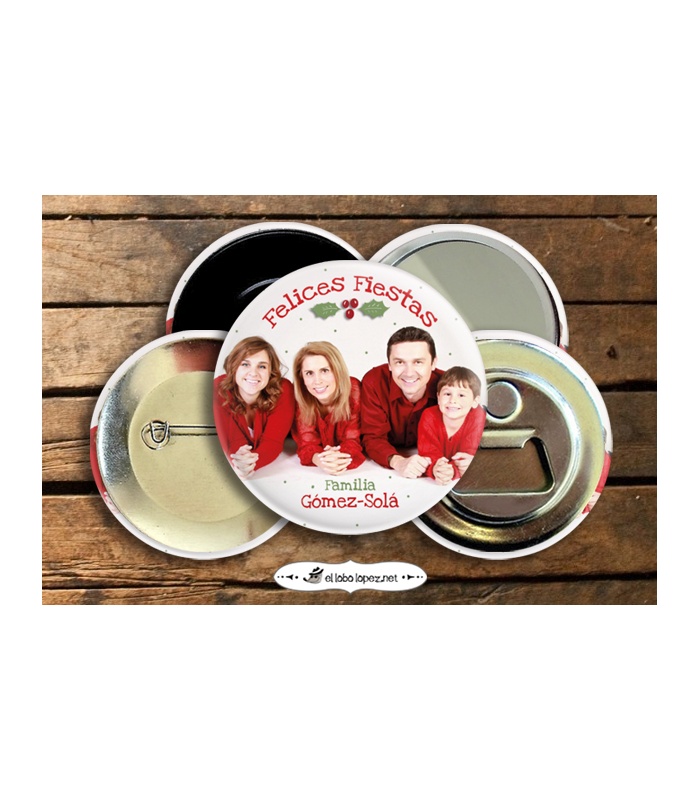 Si quieres ser de lo + Original...Felicita la Navidad con CHAPAS Personalidas con tu foto...De esa forma siempre estarás pegadito a tus seres queridos y seguro que los sorprendes!! Elige si la quieres con alfiler, imán, abridor magnético o espejo, en el desplegable.