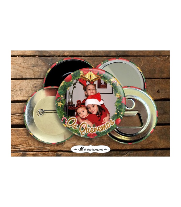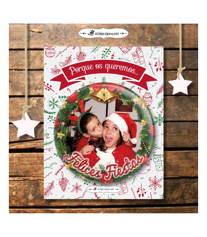 Si quieres ser de lo + Original...Felicita la Navidad con CHAPAS Personalidas con tu foto...De esa forma siempre estarás pegadito a tus seres queridos y seguro que los sorprendes!! Elige si la quieres con alfiler, imán, abridor magnético o espejo, en el desplegable.