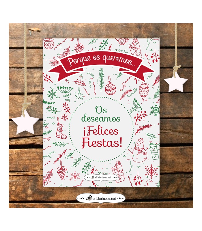 Podrás personalizar el texto con Feliz Navidad, Felices Fiestas, Familia tal...etc. Así será algo totalmente tuyo o de tu familia.