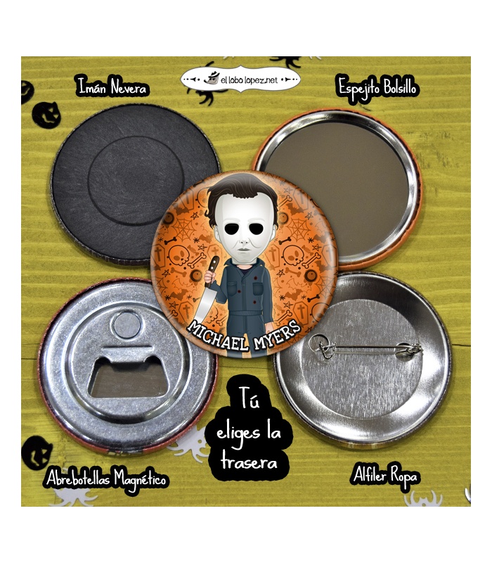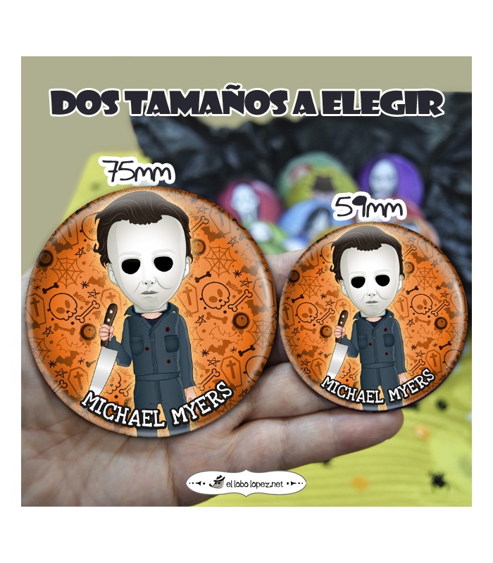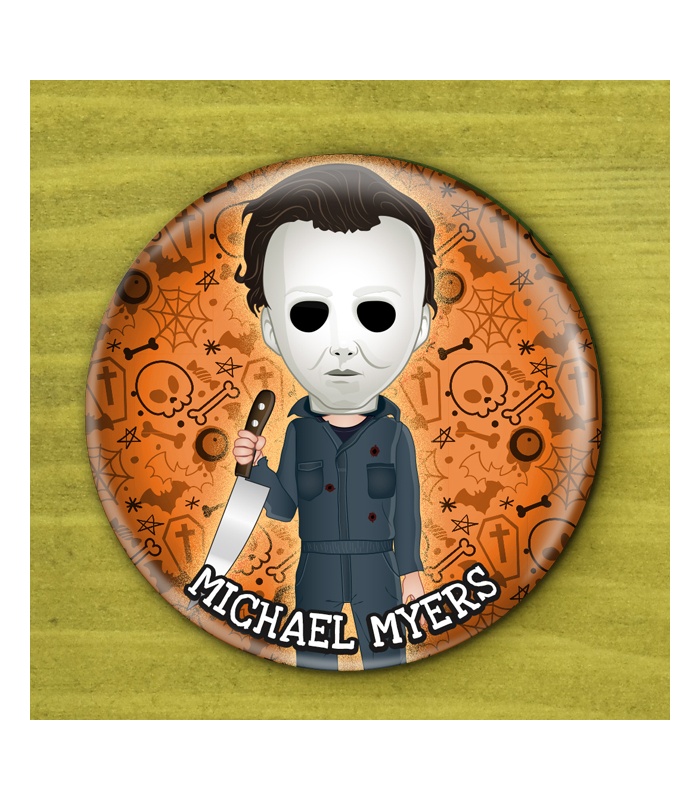 Chapa Halloween de "MICHAEL MYERS" en 59 mm y 75mm. Diseño by Selu Vargas