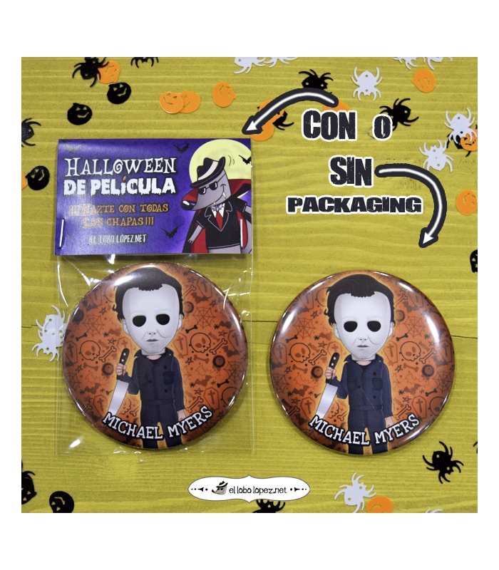 Chapa Halloween de "MICHAEL MYERS" en Ø 59mm ó 75mm de diámetro. Diseño by Selu Vargas.