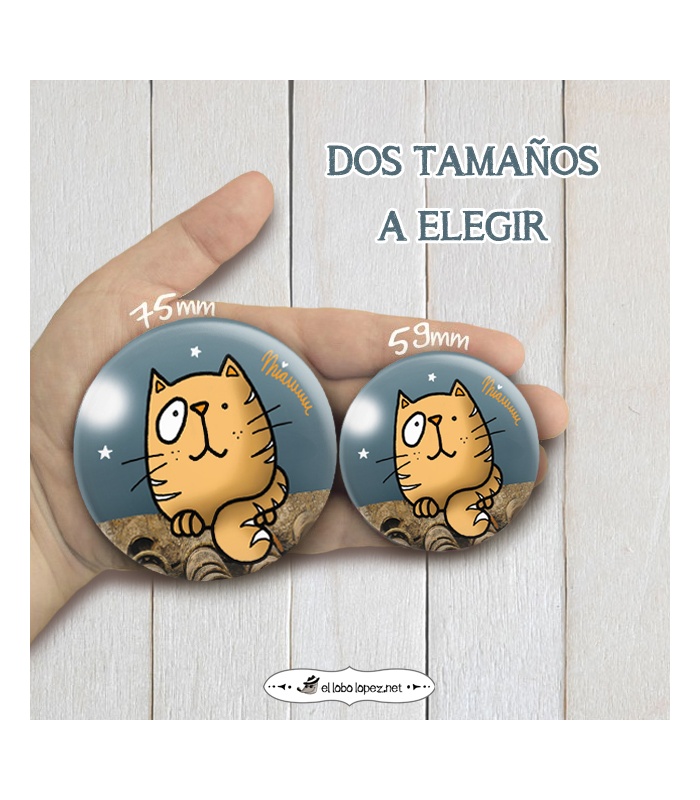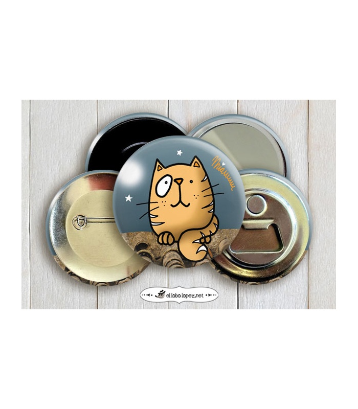 El detallito perfecto para regalar a aquellas personas que son amantes de los gatos y de la magia que desprenden. Con diferentes traseras disponibles: Espejito de bolsillo, Imán de nevera, Abrebotellas magnético o Alfiler.