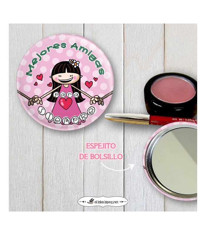 El detallito perfecto para regalar a tu mejor amiga y decirle que vuestra amistad es para siempre! Con diferentes traseras disponibles: Alfiler para la ropa, Espejito de bolsillo, Imán de nevera o Abrebotellas Magnético.... EXITO ASEGURADO!!
