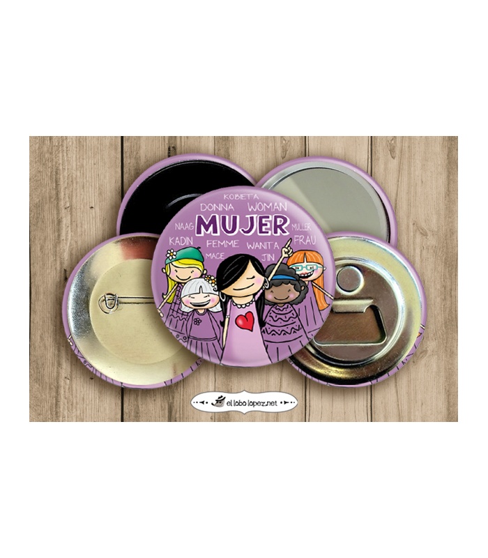 La Insignia perfecta para llevar con orgullo el 8 de Marzo y todos los días del año!! Con diferentes traseras disponibles: Abrebotellas magnético, Imán de nevera, Espejito de bolsillo o Alfiler para la ropa.
