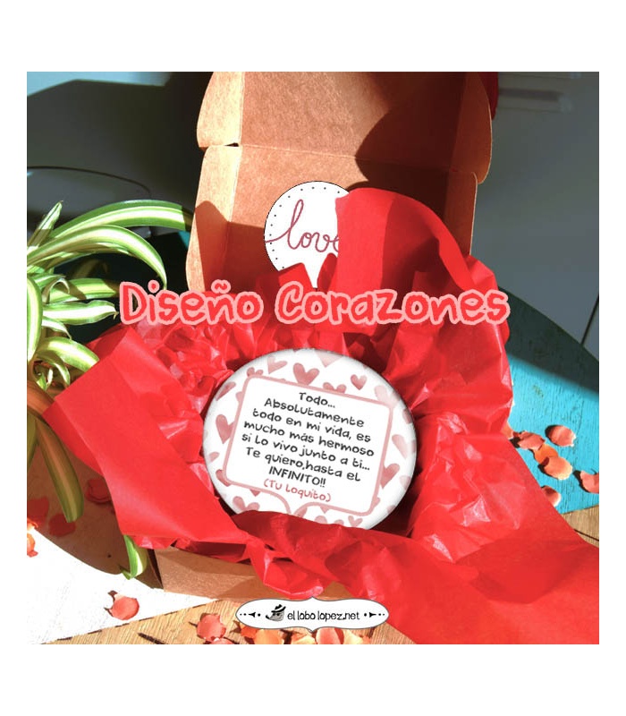 Sorprende a tu pareja con este regalito tan único y especial, transmitiéndole con tus propias palabras...cuánto la Quieres! Va presentado en una cajita super cuqui. Disponible en trasera de imán, espejito de bolsillo o abrebotellas magnético.