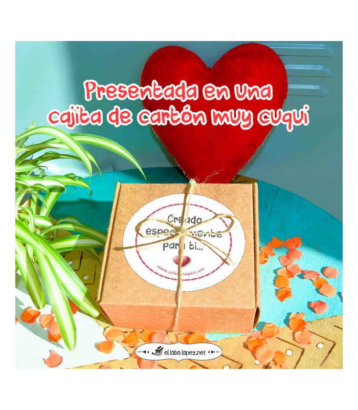 Va presentada en una cajita de cartón super cuqui y por dentro, va envuelta con papel de seda.